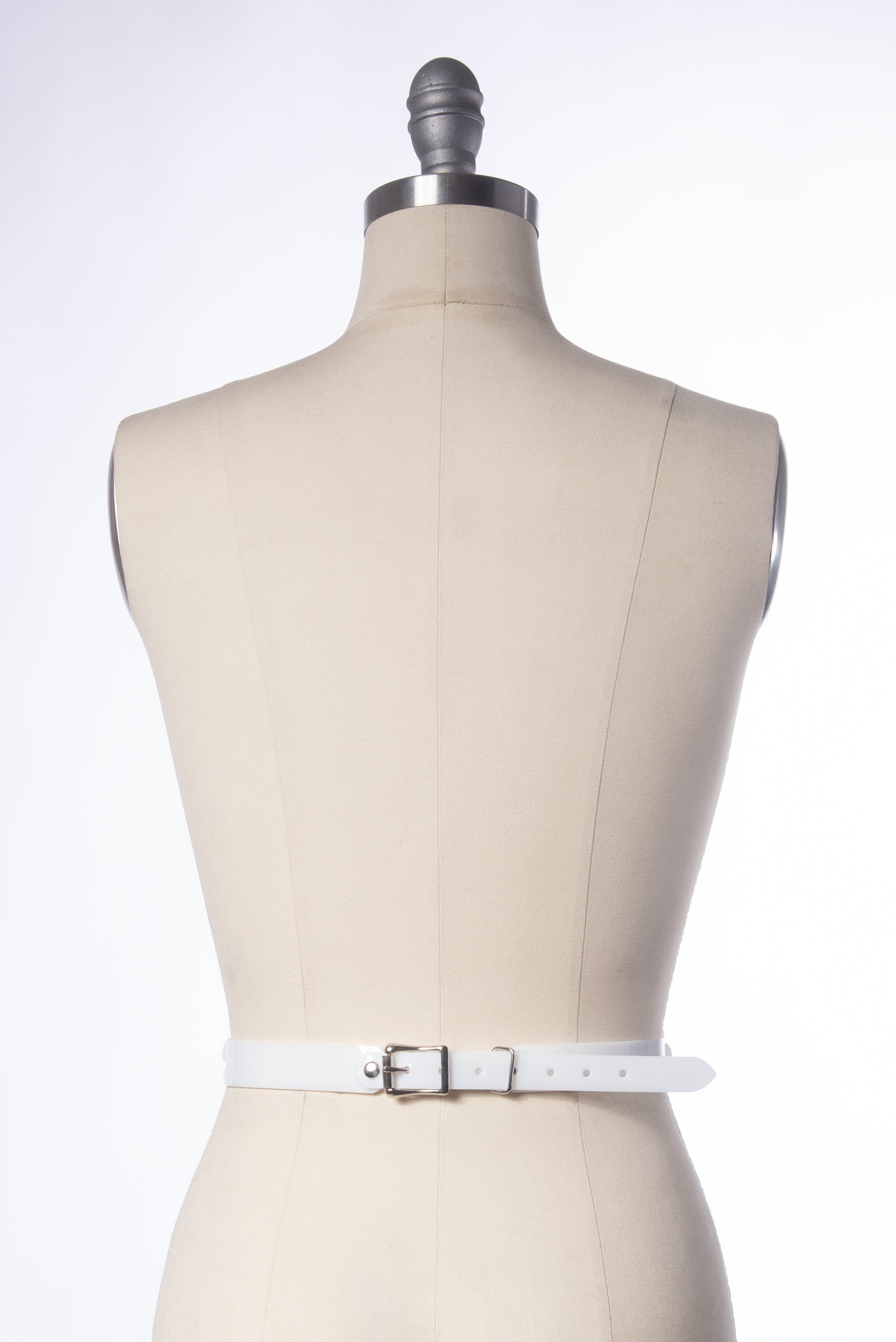 Silver toned hardware with 3/4" buckle. Shown in white PVC - also available in black PVC!