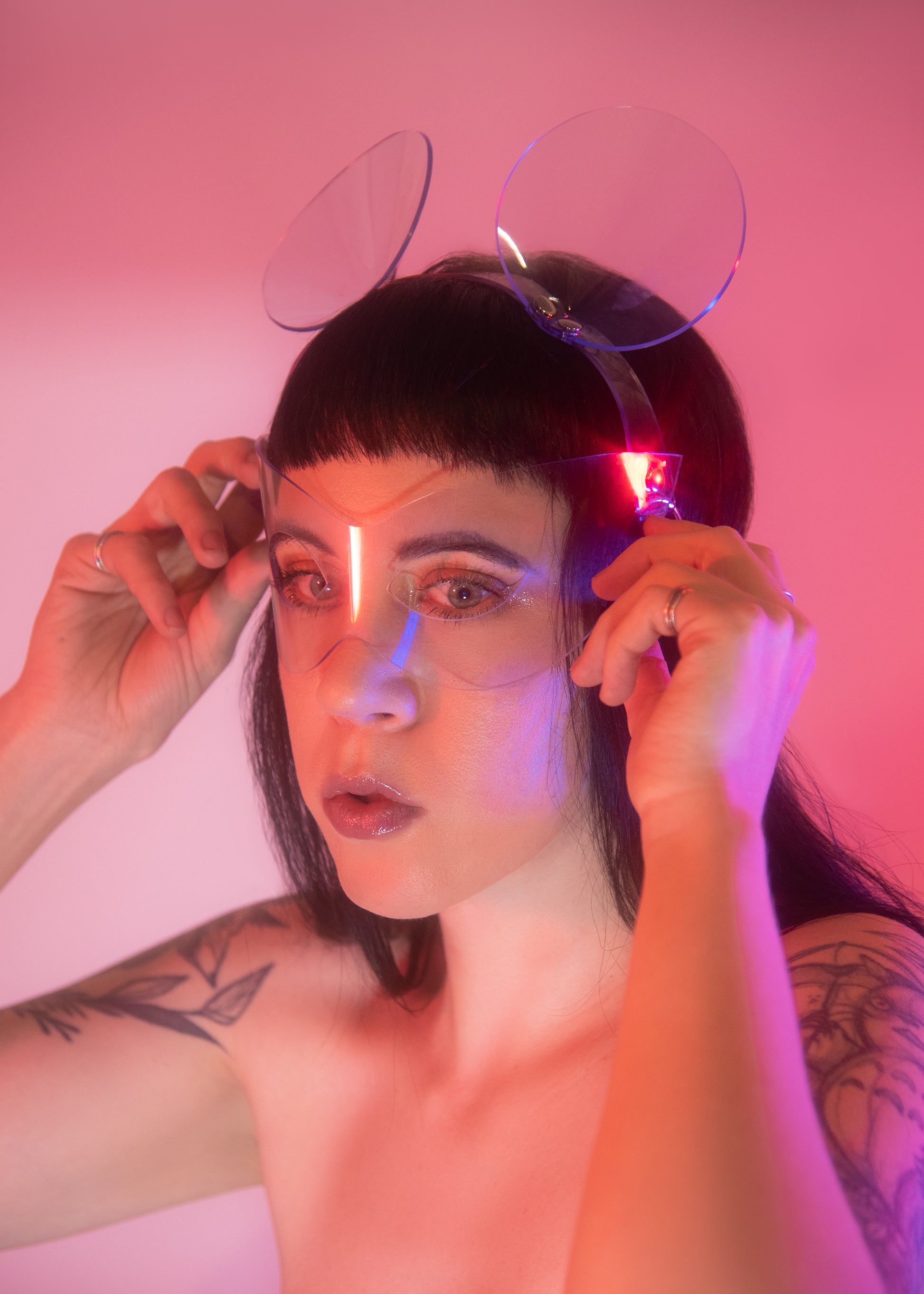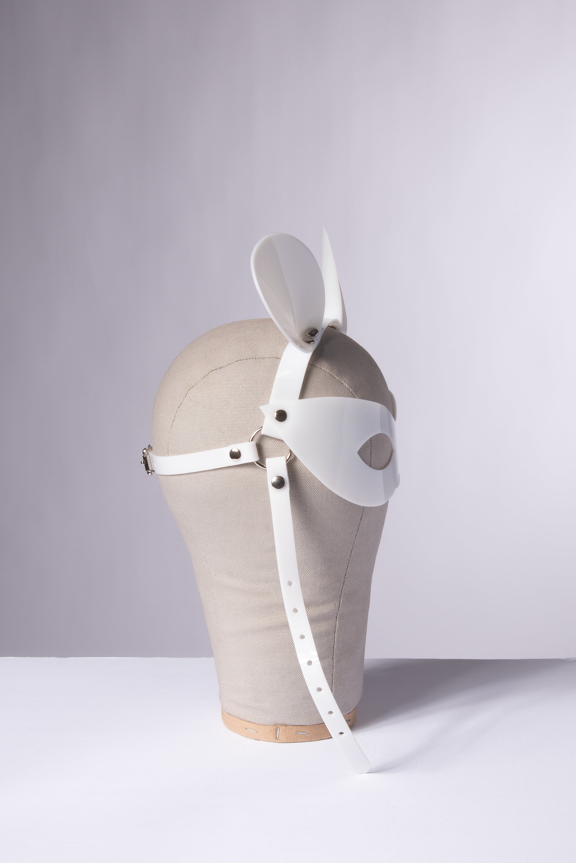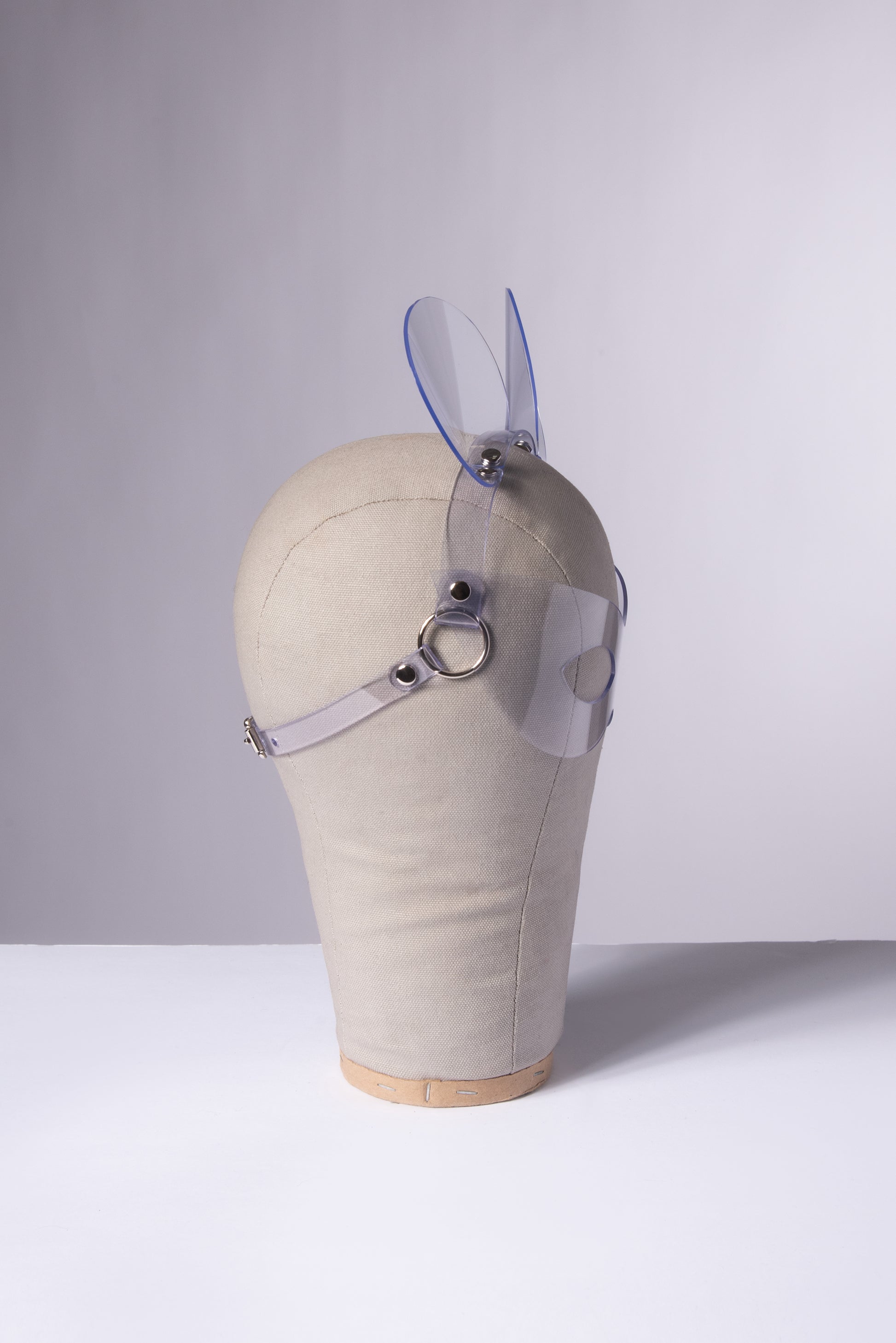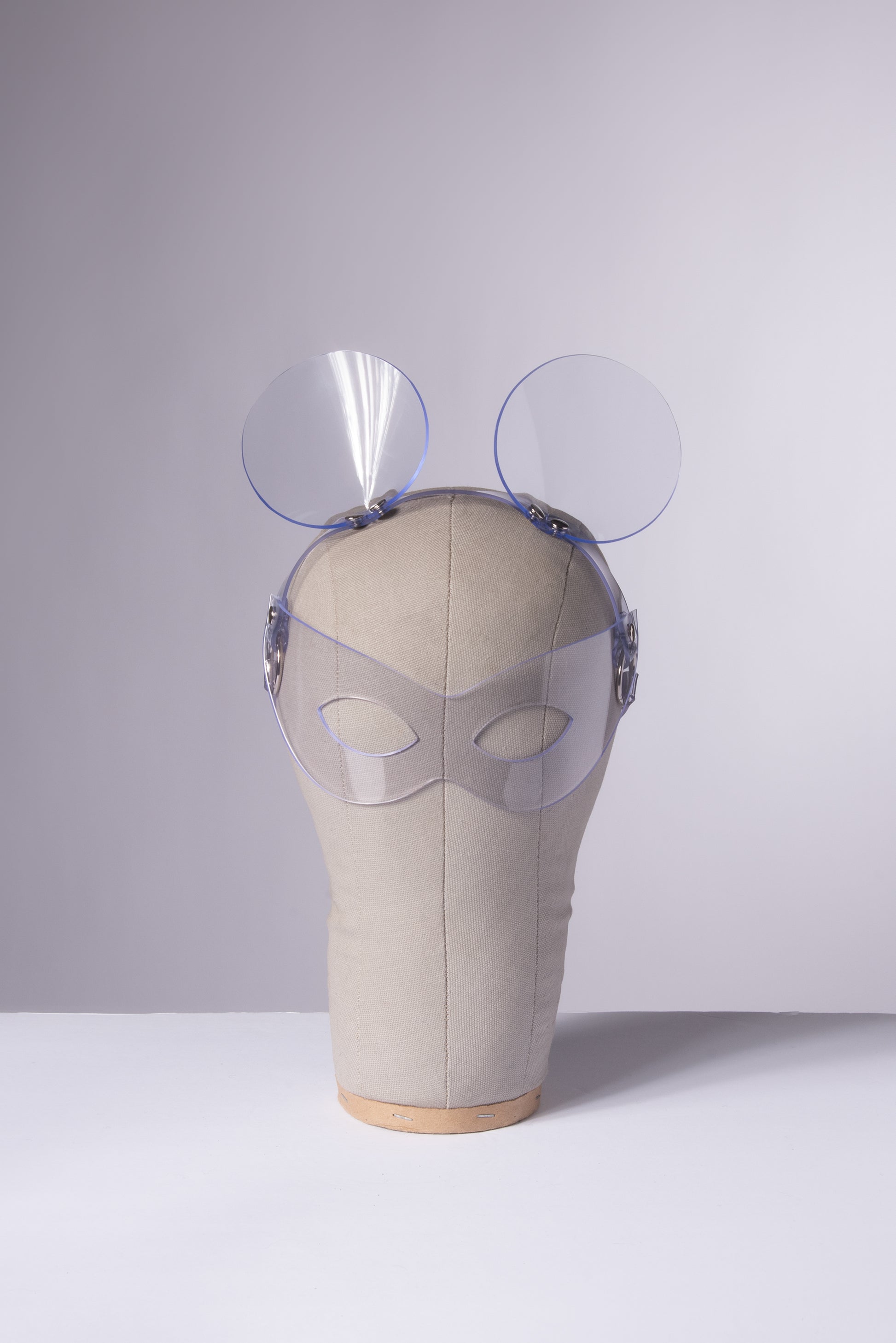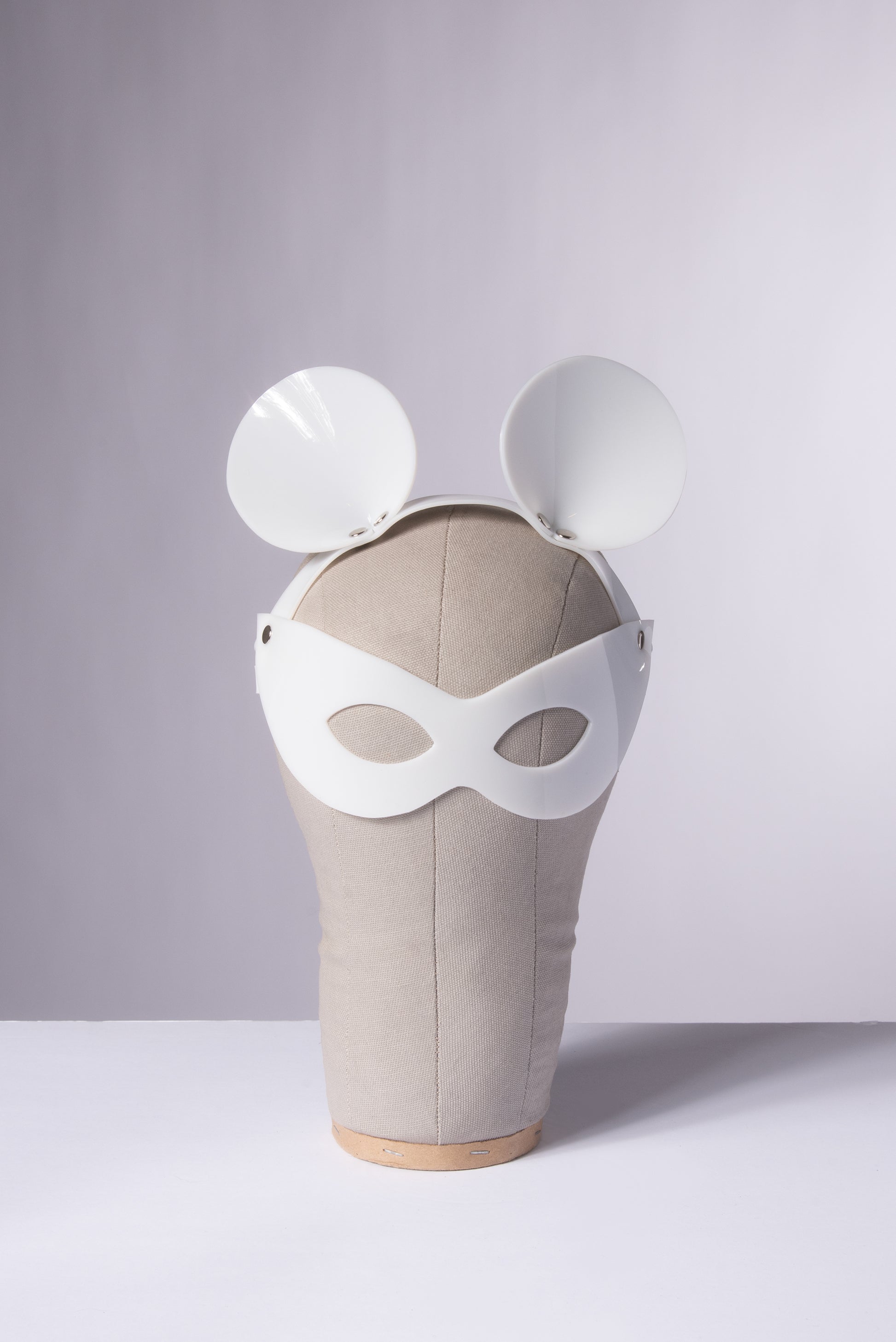 High quality, adorable mouse ears harness mask headpiece made in thick PVC, leather, or black vegan leather. Fit is adjustable with buckle in back of head.