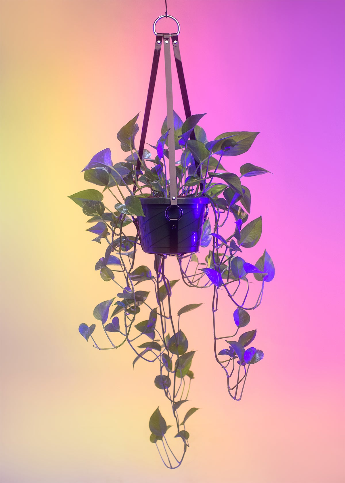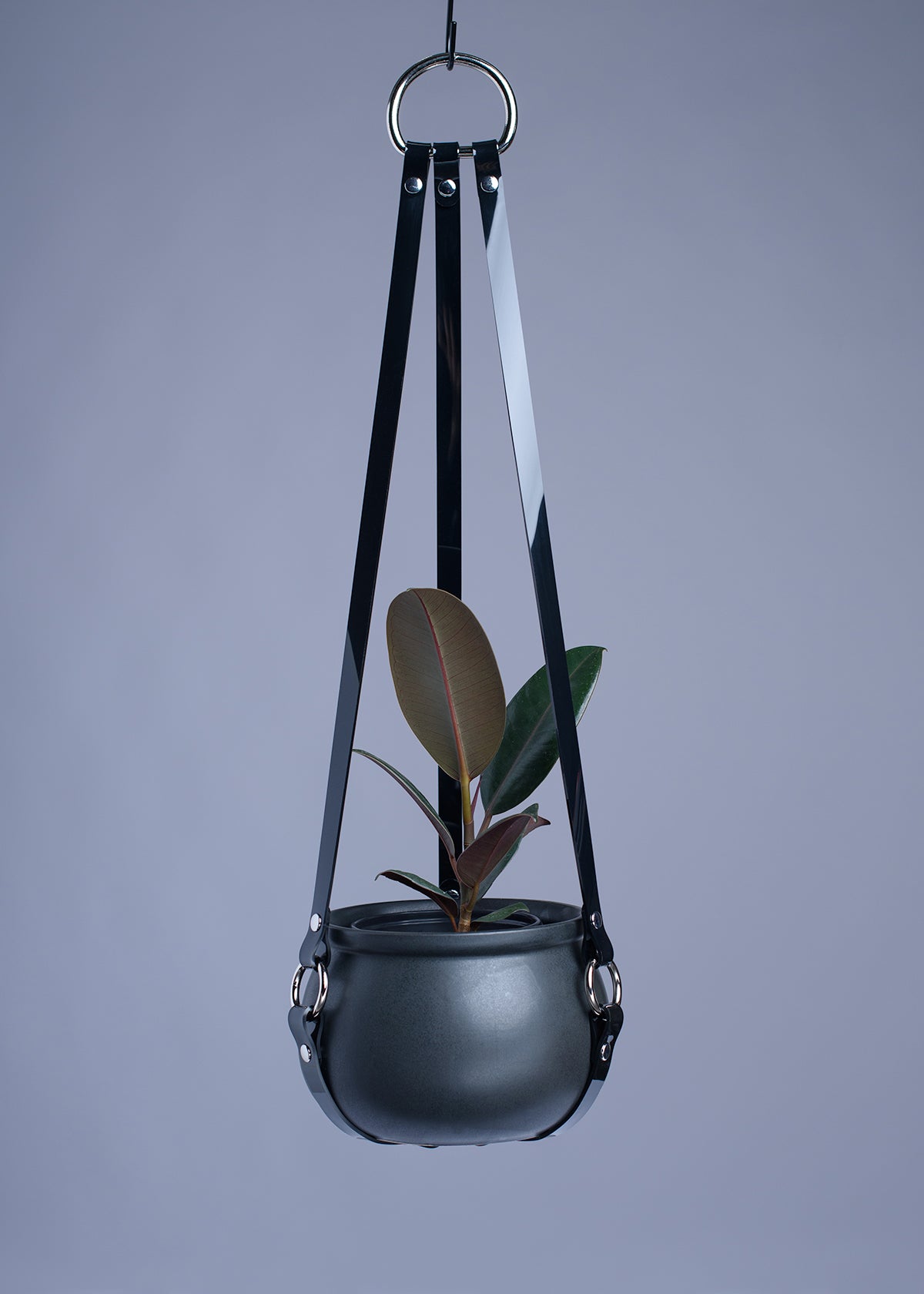 This plant hanger is designed with harness aesthetics, yet is still simple and sleek enough to let the plant steal the show. Black gloss 2mm thick PVC edges up the decor in every room.