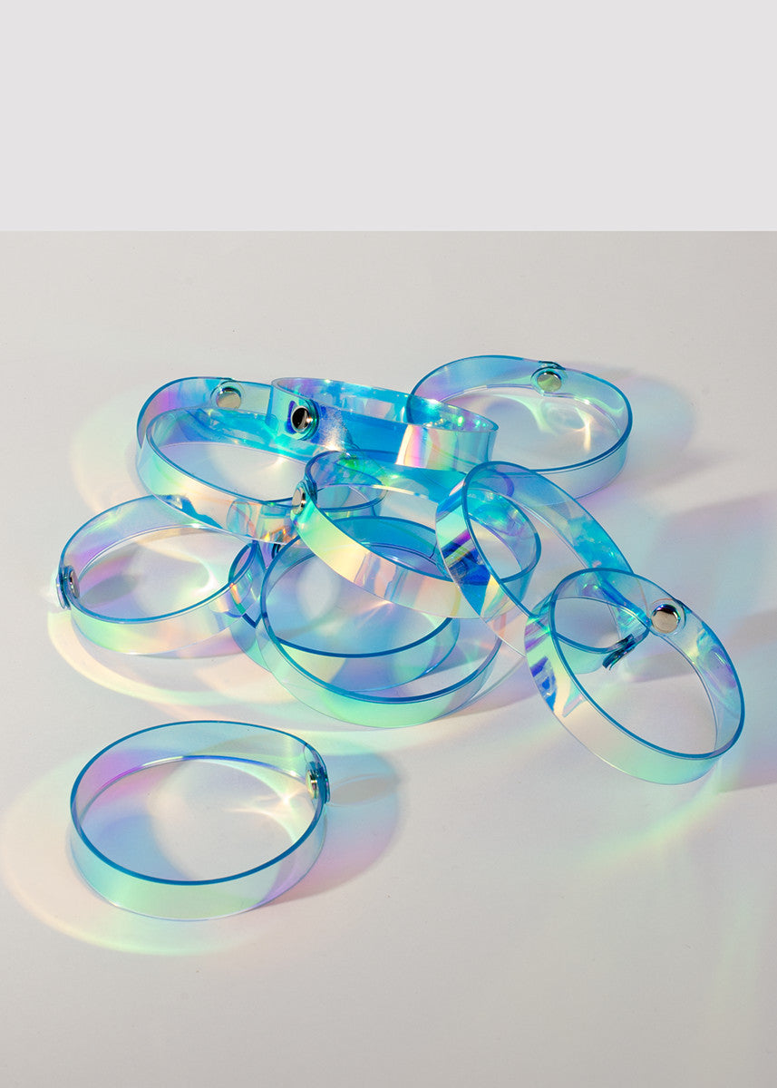 Sweet & delicate, this little holographic bangle adds the perfect pop of iridescent color to any outfit.