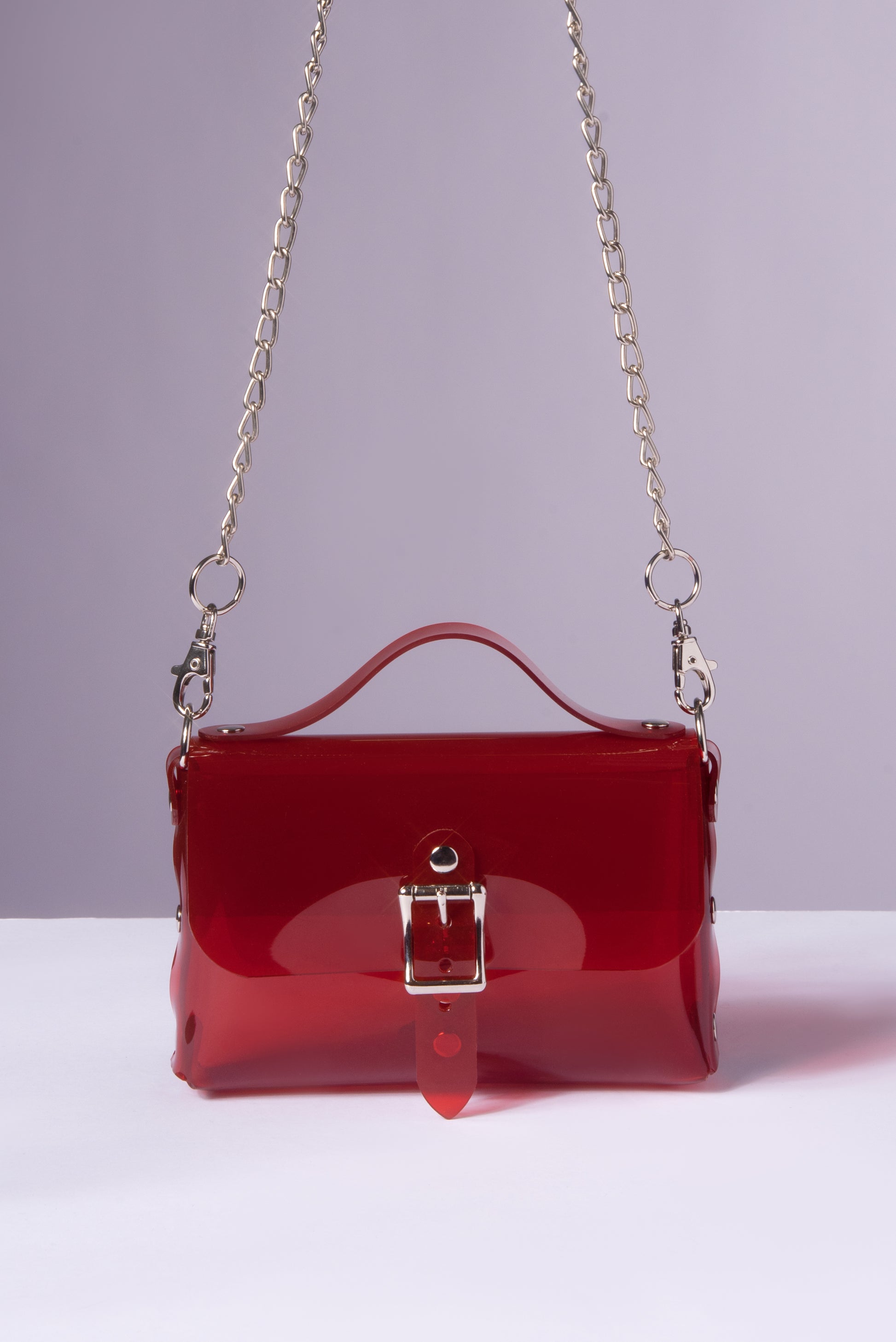 Shown in Translucent Red PVC - also available in clear, black, and white PVC; vegan leather; and black leather.