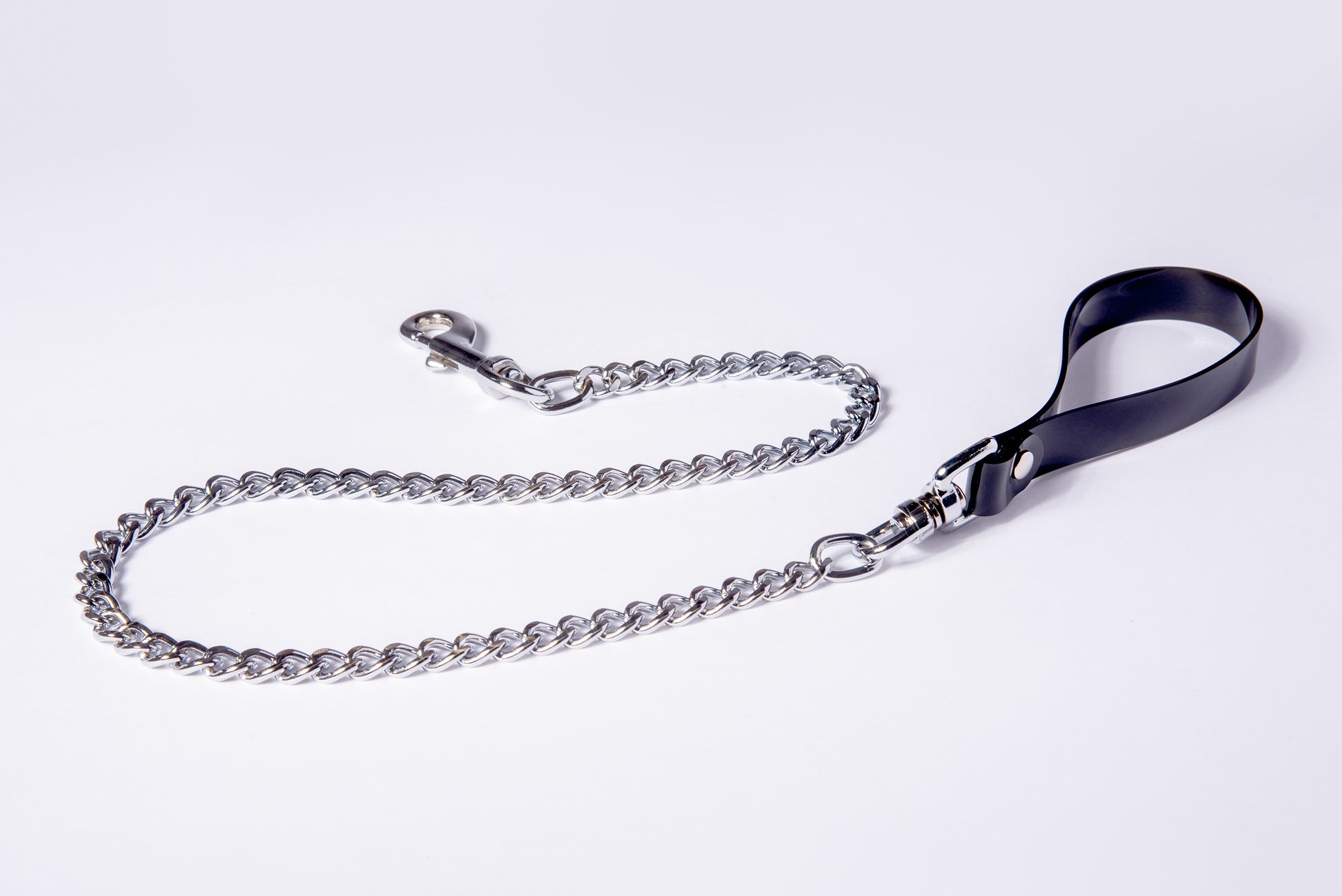 Minimal chain leash made in thick PVC. The heavy-duty chain is 30" long, total length including the handle is 36" long.