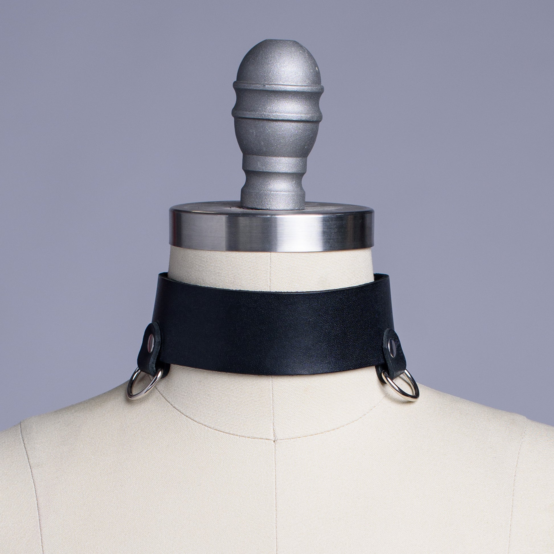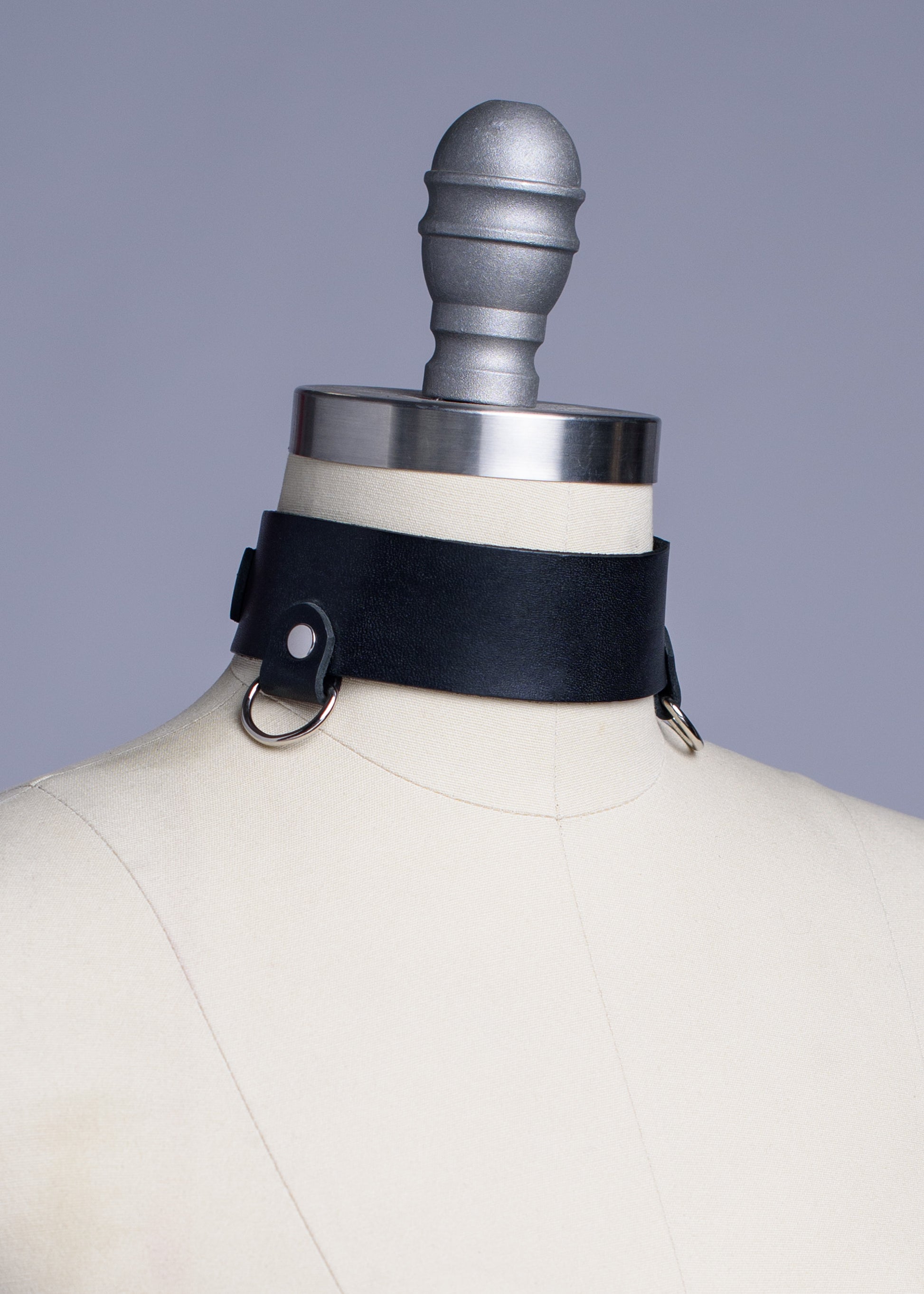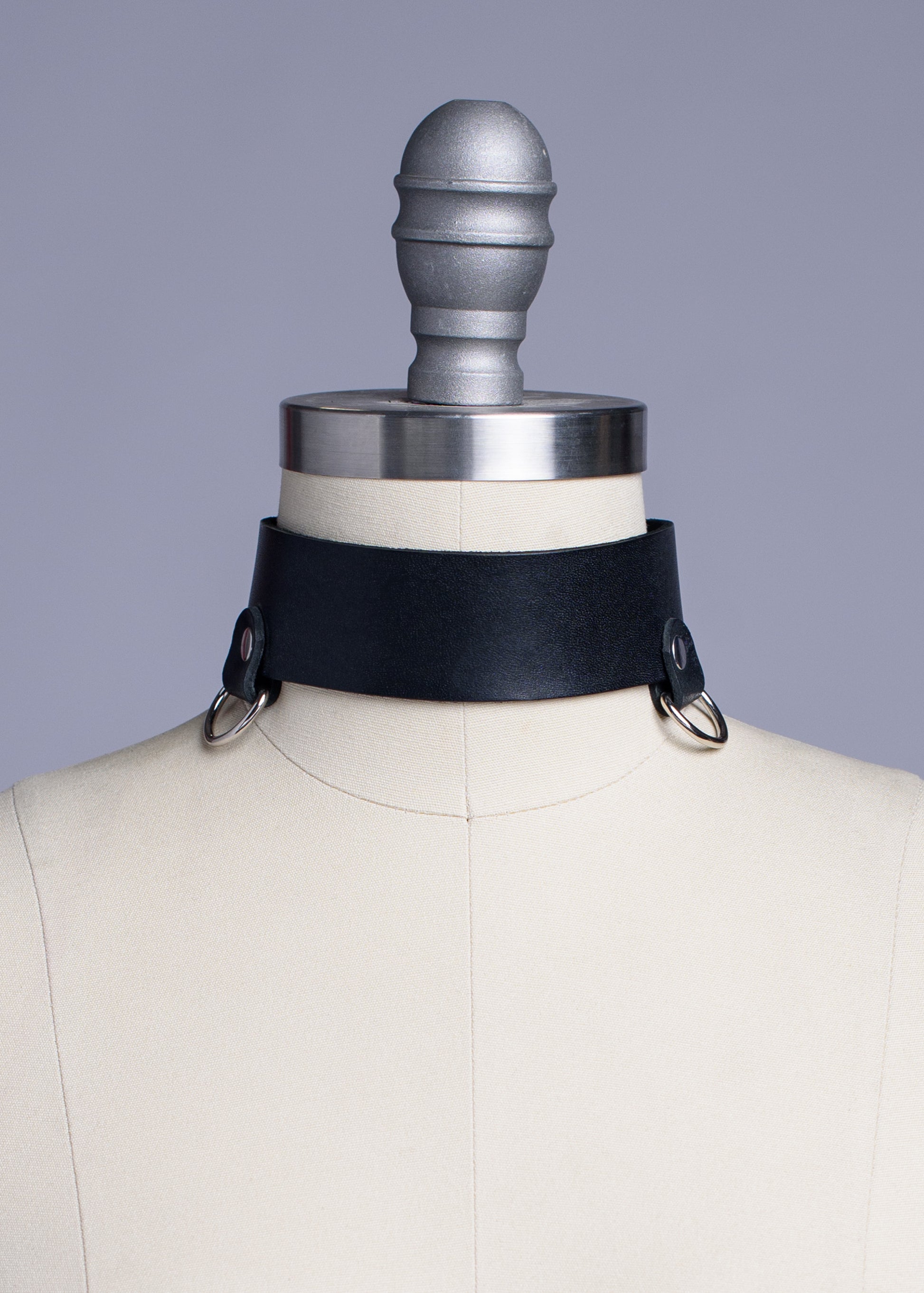 Minimalist wide collar with two d-rings on the side front for you to clip on chains, charms, leashes - whatever you like!