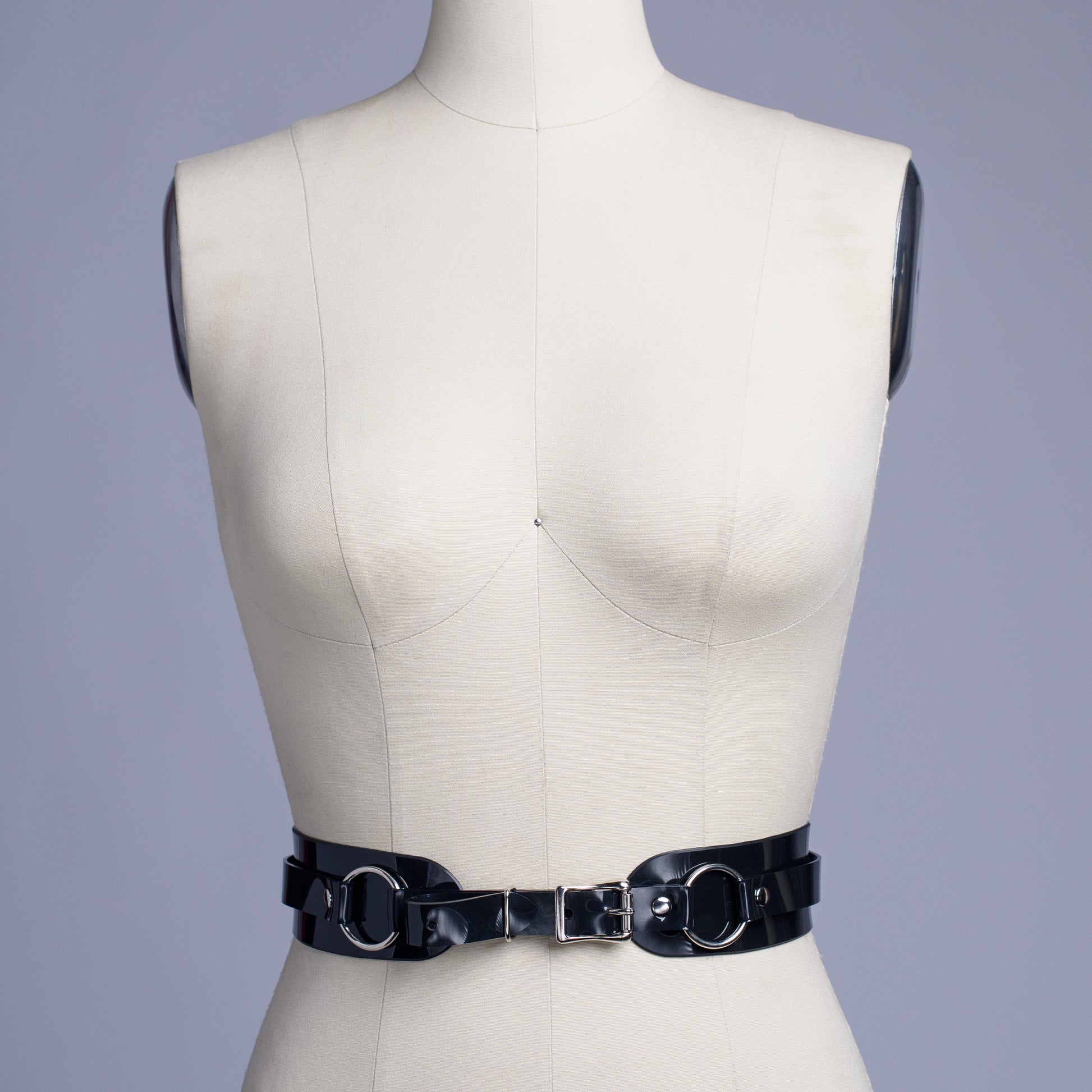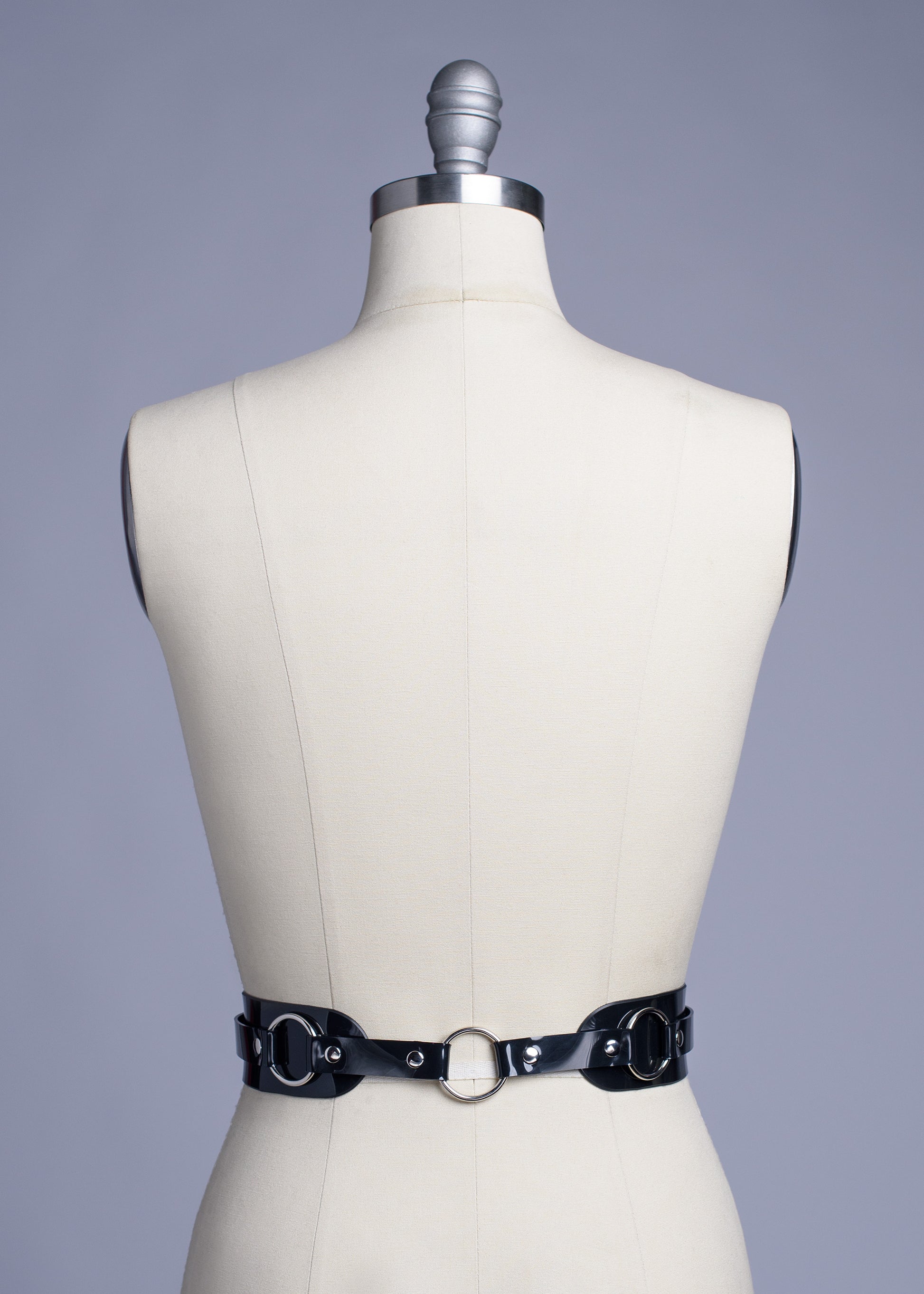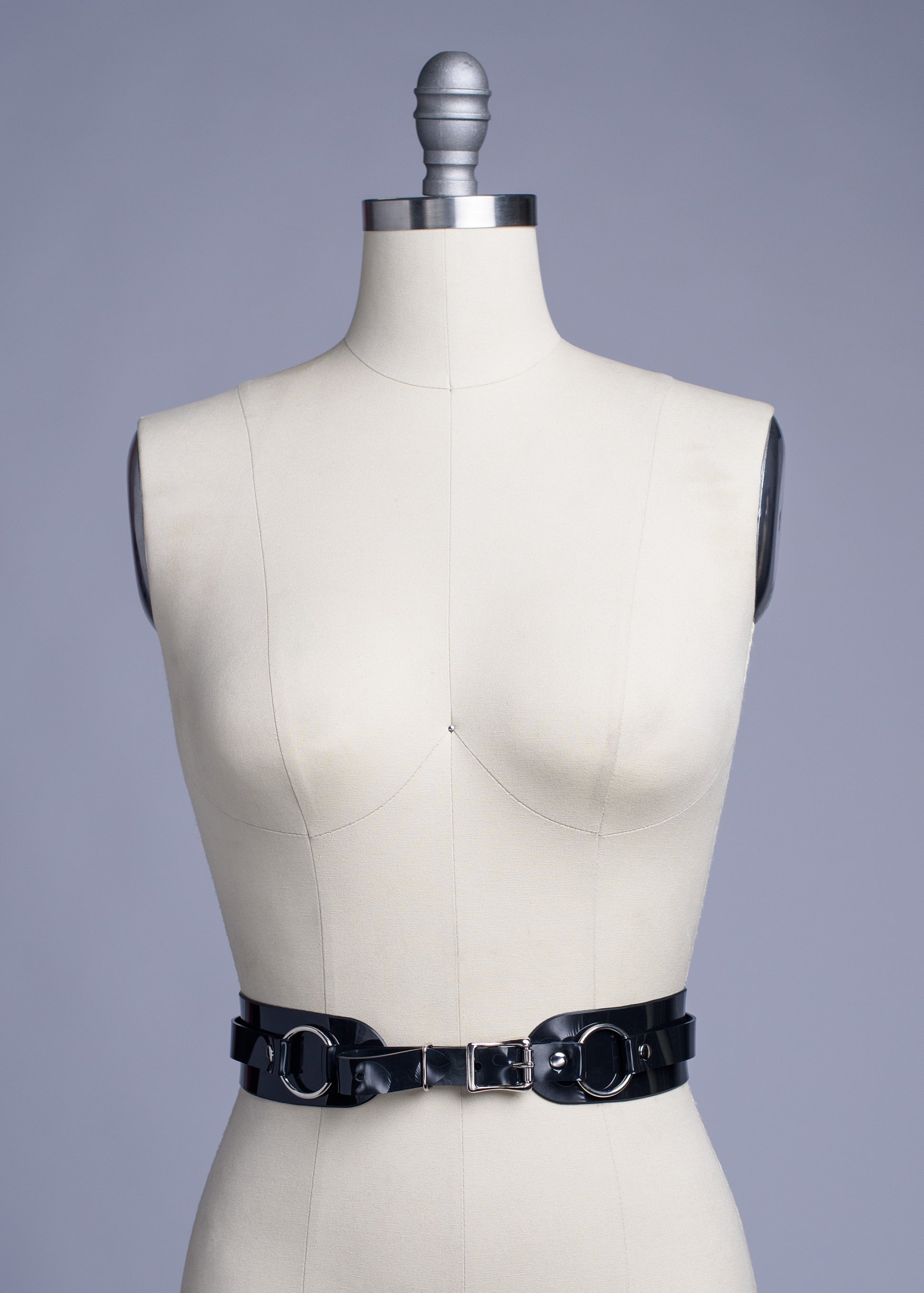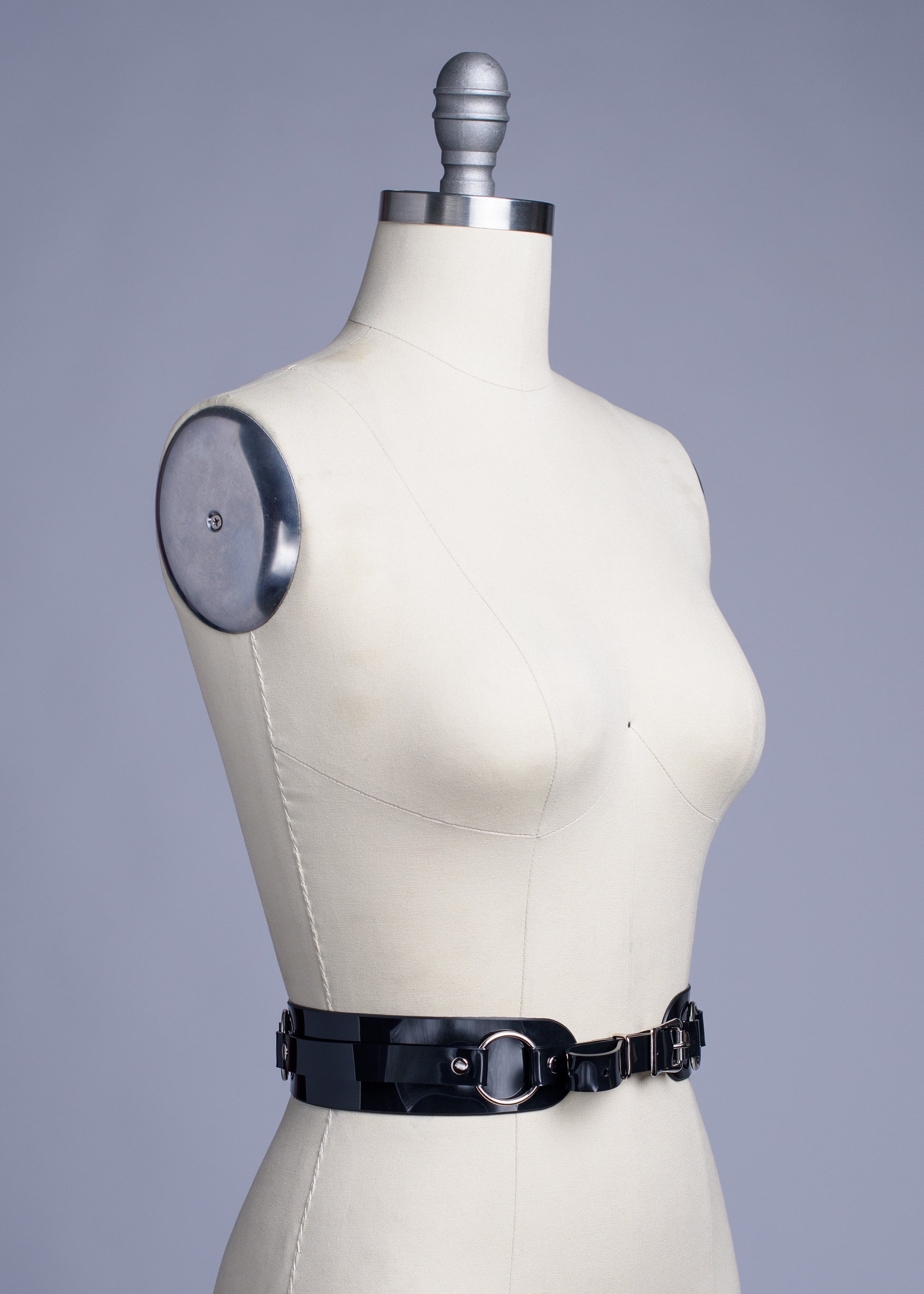 This is one of those belts that's a great elevated basic. Designed to sit at the waist, it enhances the waist with sleek curves and enough hardware to edge up any outfit. Plenty of o-rings for you to clip on chains, keys, and anything else! Belt is 2" wide. Silver-toned nickel plated steel hardware.